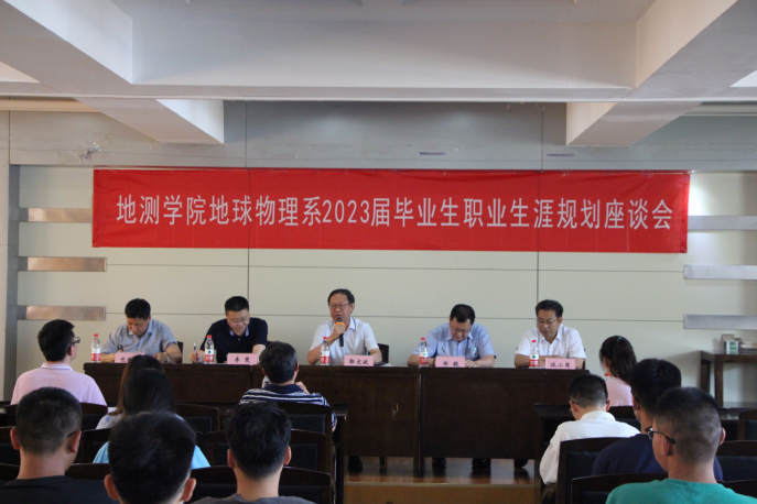 下午,李振洪经理、邵广周副经理、潘迎副书记和地球物理系实习指导教师等人邀请西安西北有色物化探总队有限公司党委书记、执行董事郭文波,中国石油西部钻探地质研究院西北分公司党委书记郑毅,长庆油田勘探开发研究院副经理李斐和陕西省煤田物探测绘有限公司副总经理汶小岗针对考研与就业问题对员工进行指导座谈,座谈会由地球物理系主任包乾宗主持。