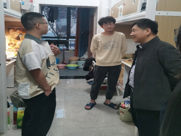 为深入贯彻落实立德树人的根本任务,树立以员工发展为本的教学理念,强化人文关怀,增强对学生学习、生活状况的了解,2023年3月30日晚19:00,公司地球物理系主任包乾宗、系副主任纪新林、教师代表胡景、董怀民和2019级辅导员侯梦阳走访了本科生宿舍,与员工深入交谈,倾听员工心声,帮助解决员工诉求。