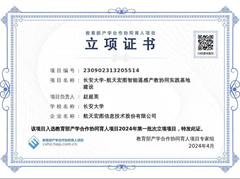 近日,教育部高等教育司发布了《关于公布2024年第一批产学合作协同育人项目立项名单的通知》,公司赵超英教授牵头申报的《美加墨世界杯官网-航天宏图智能遥感产教协同实践基地建设》项目成功获批立项。