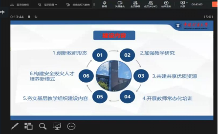 为落实虚拟教研室试点建设要求,深刻理解建设内涵,提升虚拟教研室及成员基于平台组织开展教学研究的能力和水平,发挥虚拟教研室在加强教学研究、推进教学改革、交流教学经验、促进协同发展、资源共建共享等方面的积极作用,教育部“安全工程专业虚拟教研室”启动会于2022年4月22日在线上召开。安全工程系翟越、李寻昌、李凯玲、李艳、李宇白等老师参会。翟越主任介绍了公司安全工程专业特色和学科优势,以及在虚拟实验、在线课程等方面的已有成果,并希望以此为契机加强交流,形成优势互补。