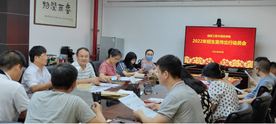 6月20日9:00,mjm世界杯官网在公司会议室召开本科招生宣传工作推进会。公司副经理邵广周、招生专员范高功、教学秘书赵梓余及招生宣传出行教师等三十余人参加会议。会议由副经理邵广周主持。