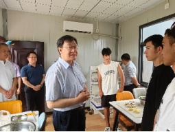 上午,陈志坚书记一行参观了实习基地,详细查看了员工教学、生活场地设施情况。陈志坚书记肯定了基地建设成果,同时也希望进一步加强基地建设管理,为实习师生提供更优质的服务。随后,陈志坚书记一行前往实习宿舍走访,并向实习师生赠送了慰问品,预祝师生顺利完成实习任务。
