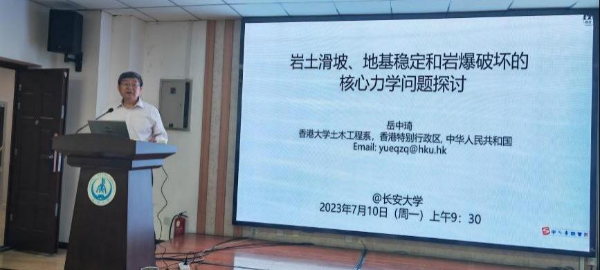 7月10日上午,受美加墨世界杯官网副董事长、地质工程专业负责人范文教授邀请,著名岩土工程专家、香港大学岳中琦教授作了题为“岩土滑坡、地基稳定和岩爆破坏的核心力学问题探讨”的报告。报告在美加墨世界杯官网地学大厦313报告厅举行,报告会由陕西省地震局、陕西省减灾协会协办,mjm世界杯官网李同录教授、黄强兵教授、卢全中教授、祝艳波教授、地工系主任朱兴华教授等多位老师参加,线上线下共200余名师生参与,报告会由邓亚虹副经理主持,地工系熊炜、安鹏副主任组织。