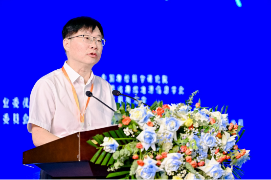 中国测绘学会副理事长兼秘书长、中国测绘科学研究公司党委书记张绍杰致辞,他向全国大地测量与导航工作者们对中国测绘学会和大地测量与导航专业委员会工作的支持表示感谢,强调了大地测量在国家重大基础设施建设和维护中的重要作用。