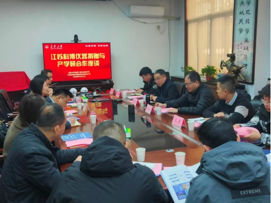 杨红斌处长对王新志、柯福阳等一行来访表示欢迎,并对王新志员工向公司捐赠的仪器表示感谢,他指出公司的发展离不开广大员工的关心和支持,此次合作是深化产学研的重要举措。随后,朱武副经理介绍了公司科研平台、团队建设、人才培养等领域的突出成果以及测绘学科的发展与规划,期待双方未来在科研、人才培养方面加强合作交流。