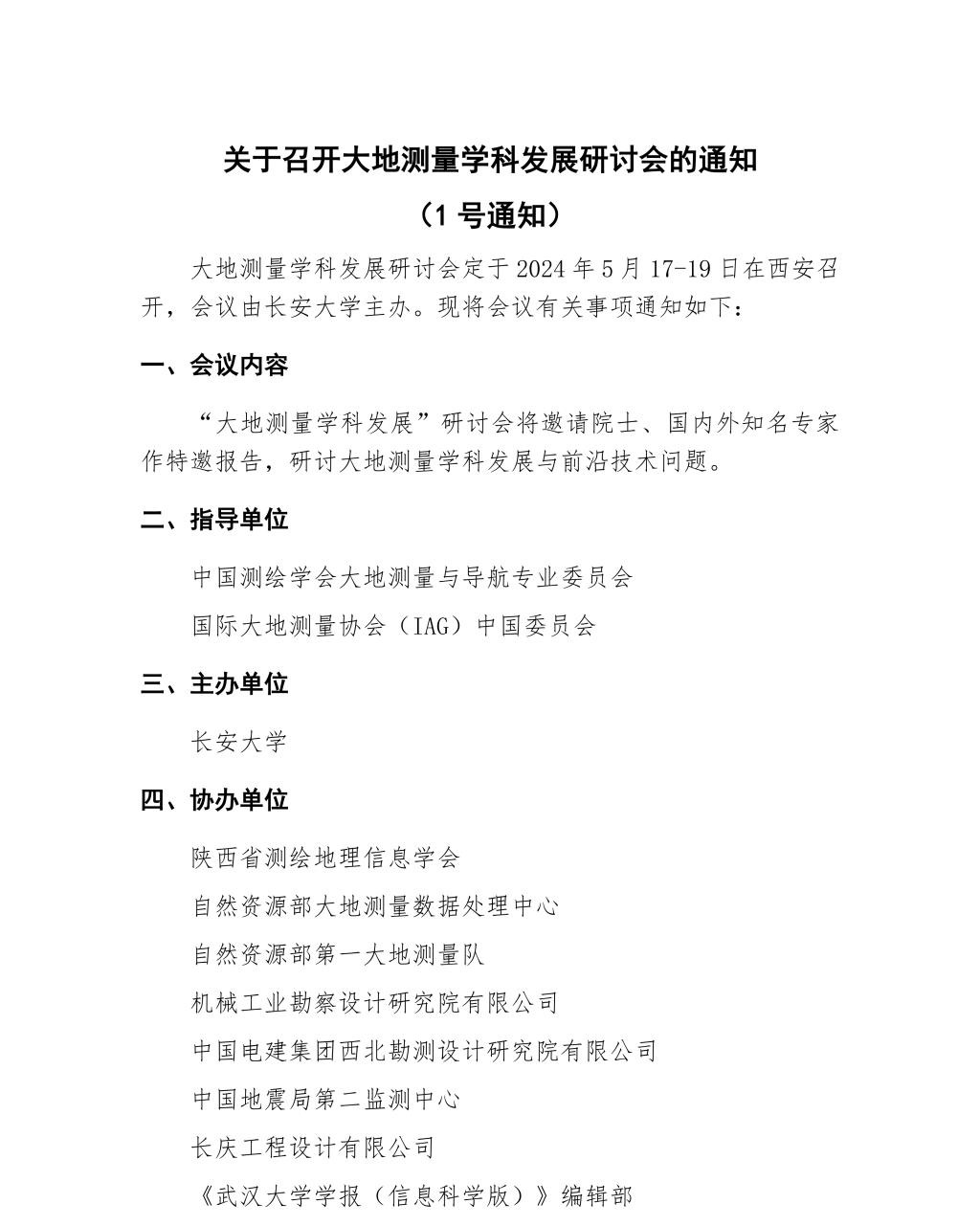 关于召开大地测量与导航2024综合学术年会的通知 (第一轮)