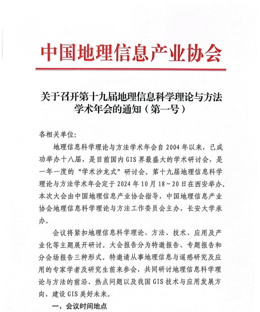 关于召开第十九届地理信息科学理论与方法学术年会的通知(第一号)
