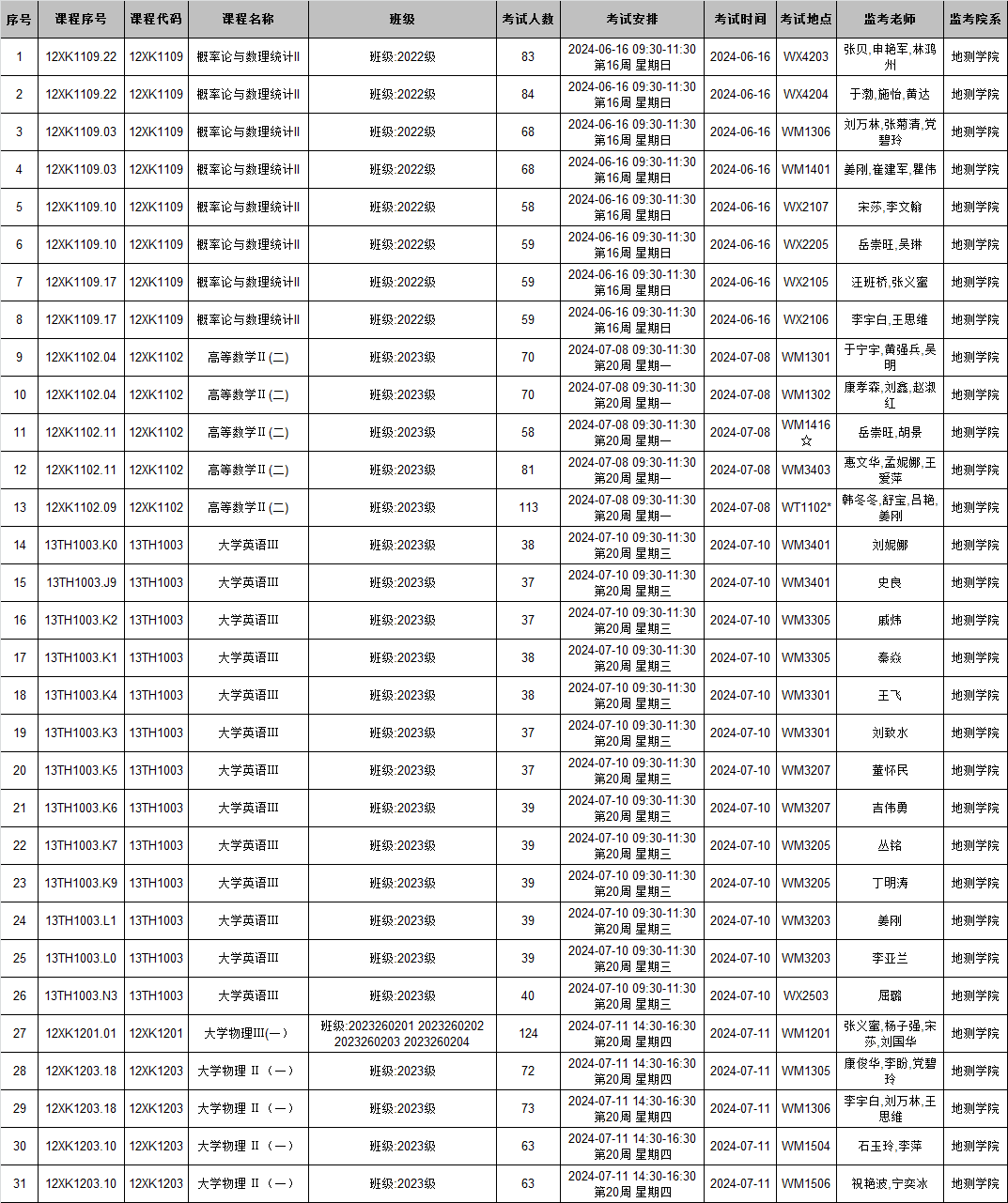 本学期公共课期末考试周考试、概率论与数理统计期末考试监考安排已发布,监考安排公司已经在本科教务系统中填报完成(监考教师可同时在本科教务系统中查看监考安排)。为确保考试平稳顺利进行,公司已将相关监考工作安排表格上传到附件中,请各位老师及时下载查阅,并按时完成监考工作。