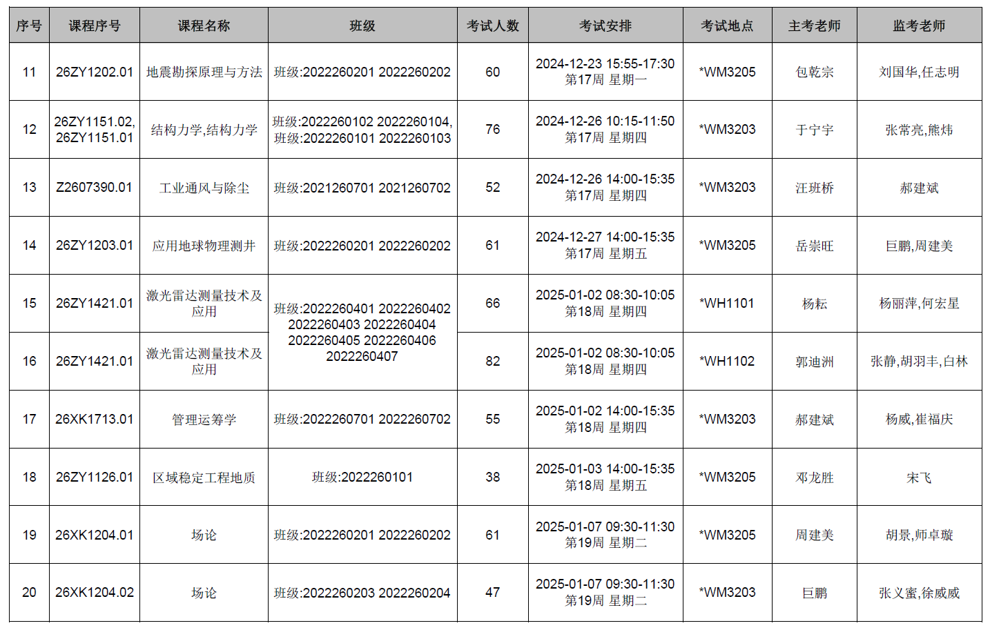 本学期第11周后结课的mjm世界杯官网开课课程期末考试监考安排已发布,监考安排公司已经在本科教务系统中填报完成(监考教师可同时在本科教务系统中查看监考安排)。为确保考试平稳顺利进行,公司已将相关监考工作安排表上传到附件中,请各位老师及时下载查阅,并按时完成监考工作。
