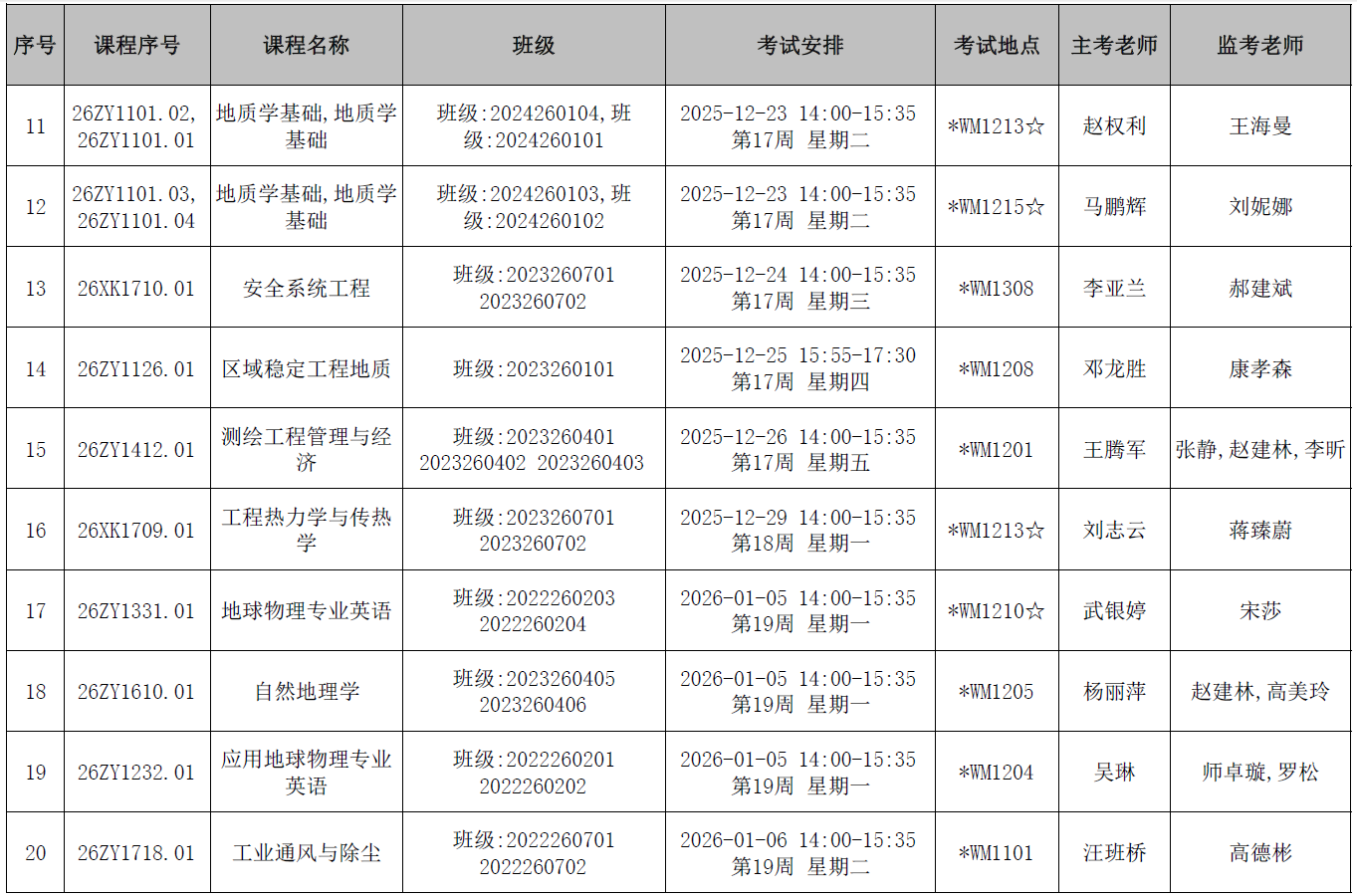 本学期第11周后结课的mjm世界杯官网开课课程期末考试监考安排已发布,监考安排公司已经在本科教务系统中填报完成(监考教师可同时在本科教务系统中查看监考安排)。为确保考试平稳顺利进行,公司已将相关监考工作安排表上传到附件中,请各位老师及时下载查阅,并按时完成监考工作。