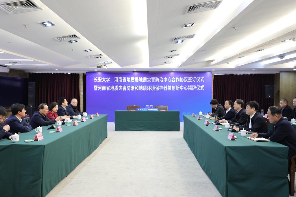 会上,双方就地质灾害防治领域技术攻关、产学研合作等议题展开了讨论与交流,就今后合作达成一致意见,与河南省地质灾害防治中心共同签订合作协议。今后将立足“区域发展导向”+“重大项目牵引”,合力打造“黄河-秦岭生态环境灾害治理体系”,集合双方单位特色与优势,力争培养出一支高水平的科研队伍,共同服务于黄河流域生态保护和高质量发展。