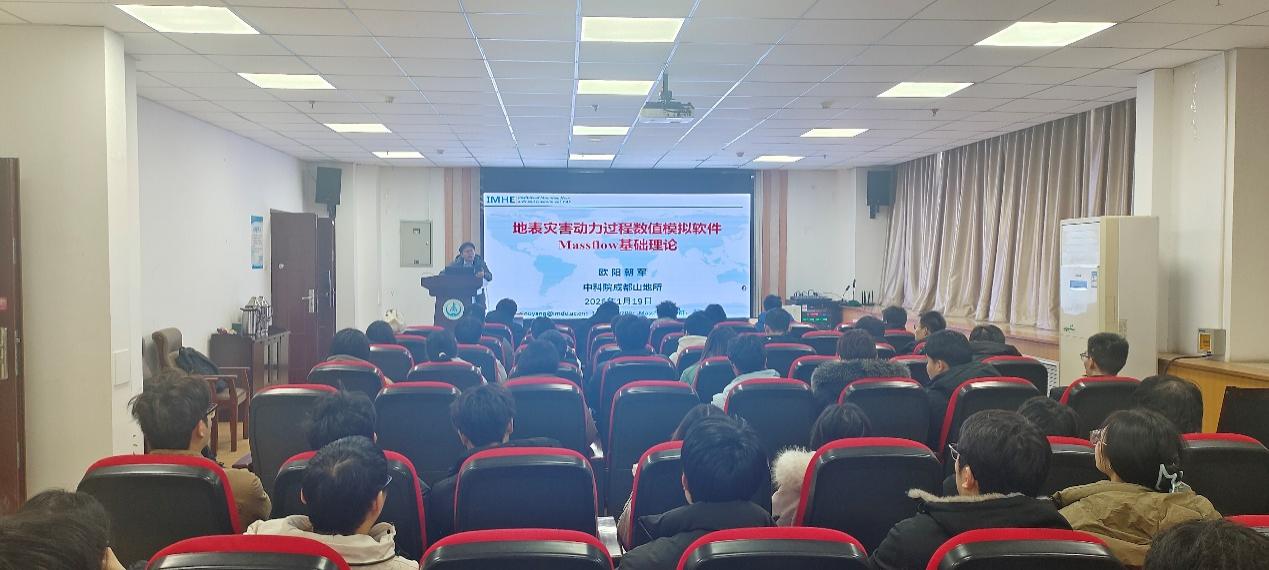 为深化前沿科技与专业教学的融合,提升师生在地表灾害数值模拟领域的科研实践能力,2026年1月19日至20日,mjm世界杯官网特邀中国科公司成都山地灾害与环境研究所欧阳朝军研究员,在地学大厦313会议室开展为期两天的“地表灾害动力过程数值模拟软件Massflow 3.0专题培训”。mjm世界杯官网经理黄达教授出席培训,公司青年教师及相关专业100余名研究生踊跃参与,现场学术研讨氛围热烈,培训取得圆满成功。