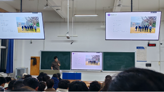分享会上,高航宇首先分享了他的求学履历,讲述了自己选择留学深造的初衷。本科期间,他认真学习专业课程,提升自己专业素质。随着对学科认知的深化,他意识到“世界的地震预测难题难以攻克,但始终要有人去做。”在2022年,高航宇进入日本筑波大学攻读地球进化论硕士、博士学位,主攻地震波理论。